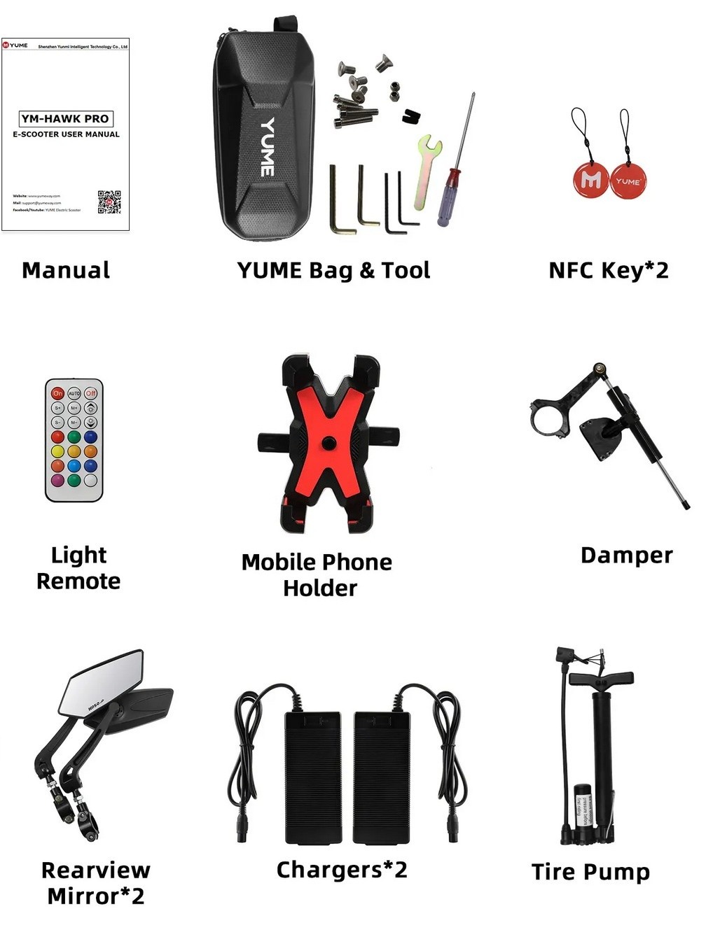 A steering dampener is included as standard. The dampener increases ride stability at speed and is an important inclusion for a high performance scooter such as the YUME Hawk Pro.